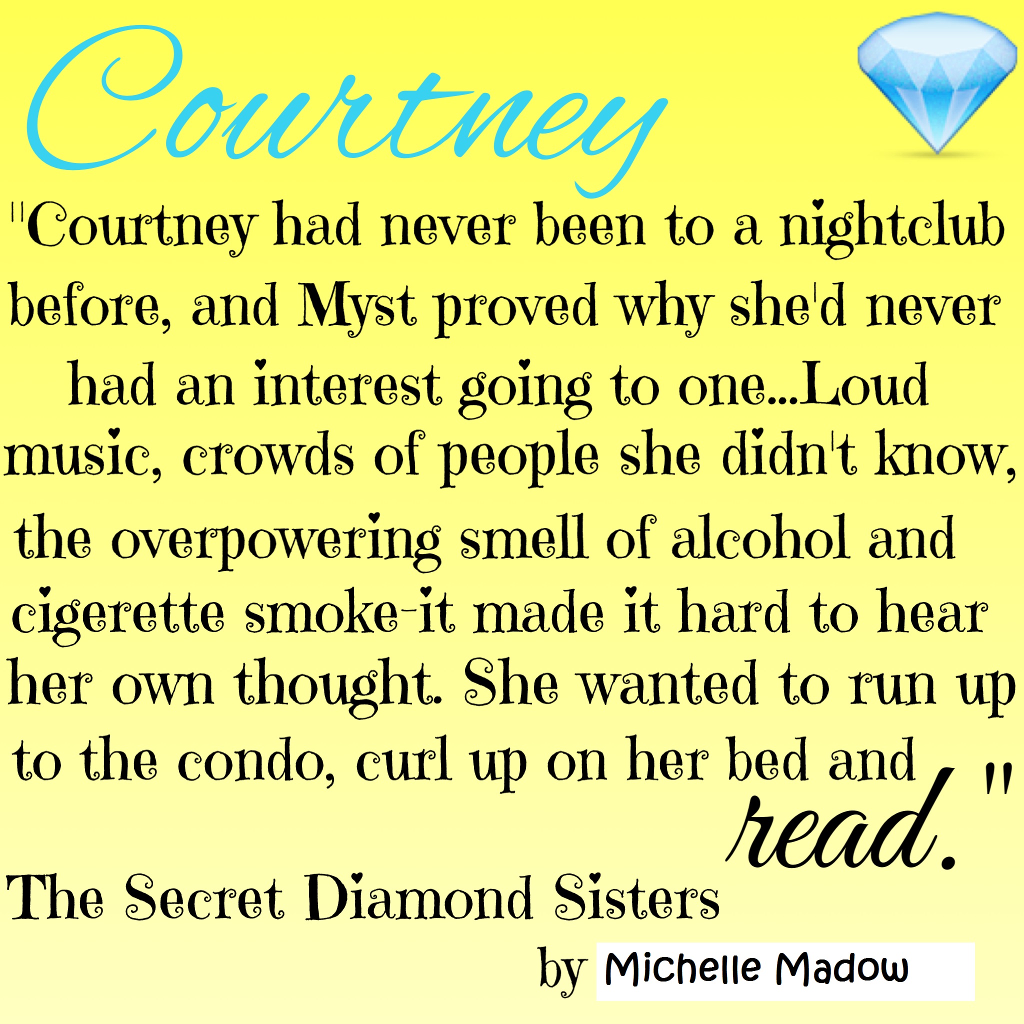 Out of the three Diamond Sisters, my favorite so far has to be Courtney. I love her personality, very similar to myself (as far as being somewhat shy and awkward, but very nice and caring).
