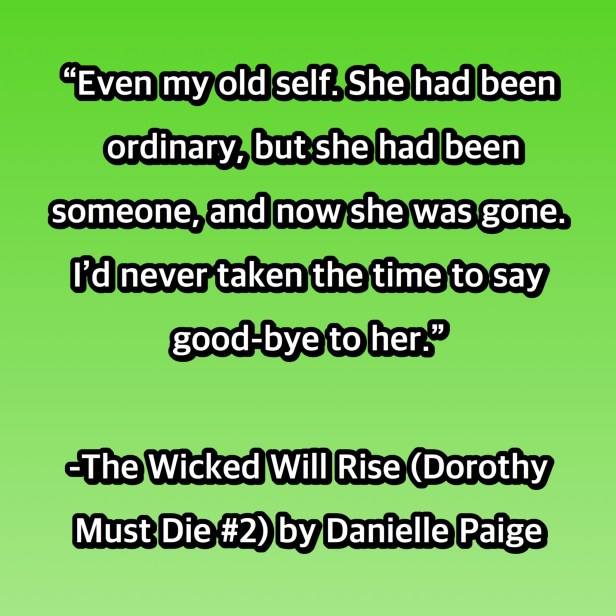 “You traded flight for freedom, if you had to, even if it meant losing a part of yourself. Sometimes, in Dorothy’s Oz, you had to get your hands a little bloodied. Okay, maybe a lot bloodied”.
