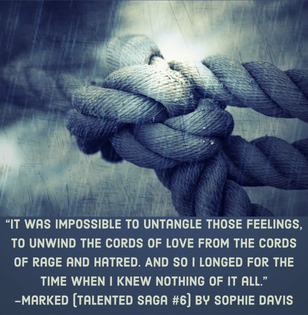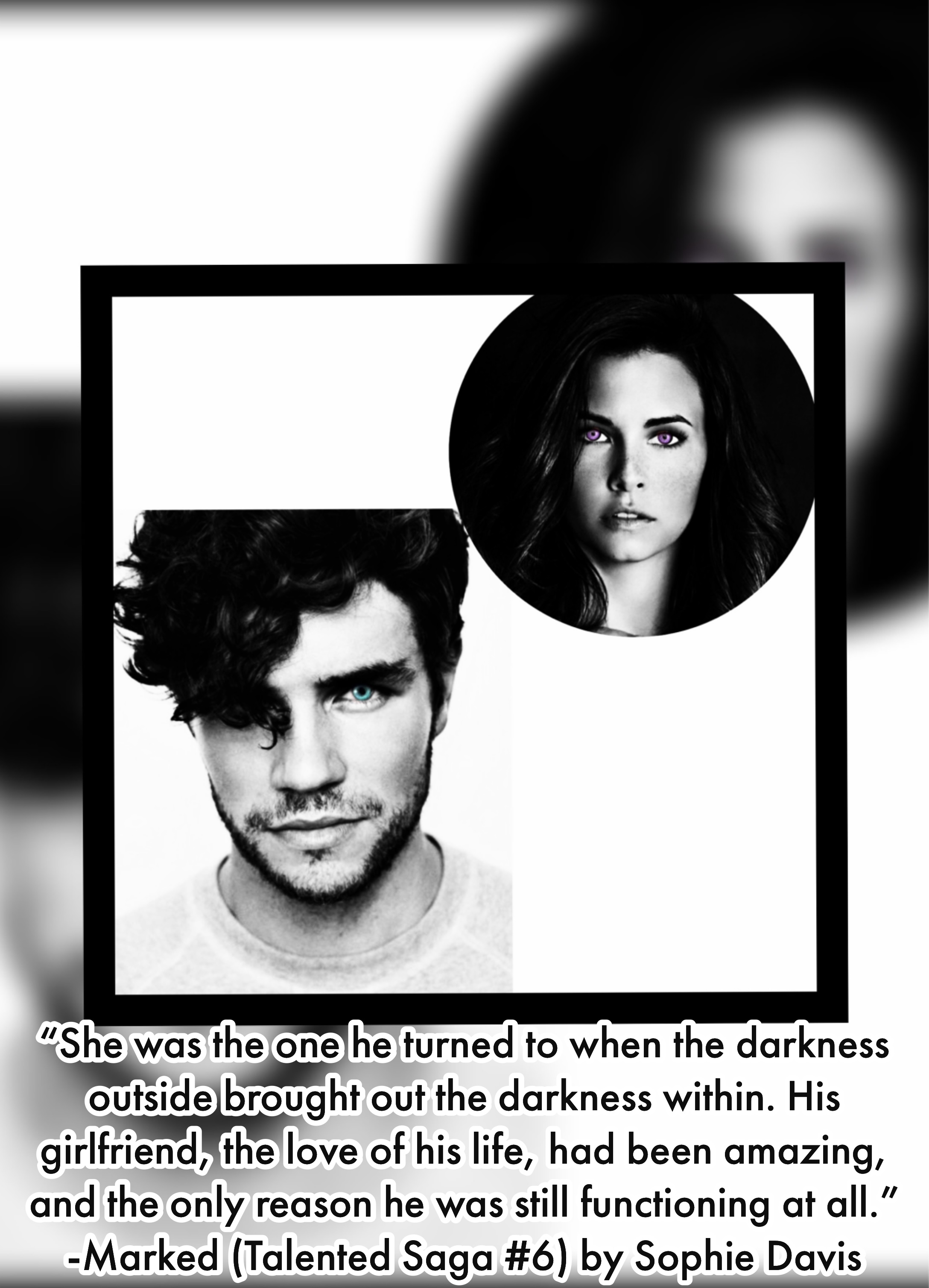 This novel also explores characters mental stability/instability regarding everything they have been through until this point, ie Talia, Erik and Penny. Marked has been, by far, my favorite book in the Talented Saga. You’ll see some people from Erik and Talia’s past; and decisions made that will have a dire impact on Talia and Erik’s future.